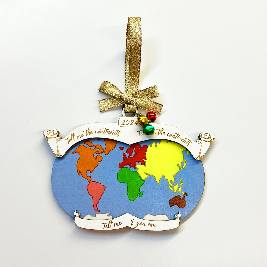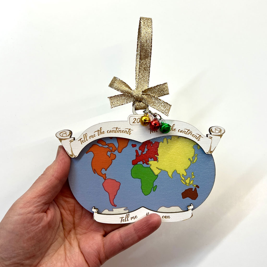 This Montessori themed ornament celebrates the well loved Continent Song – do you know it?? Get your nearest 3 year old Montessori kiddo to sing it to you.