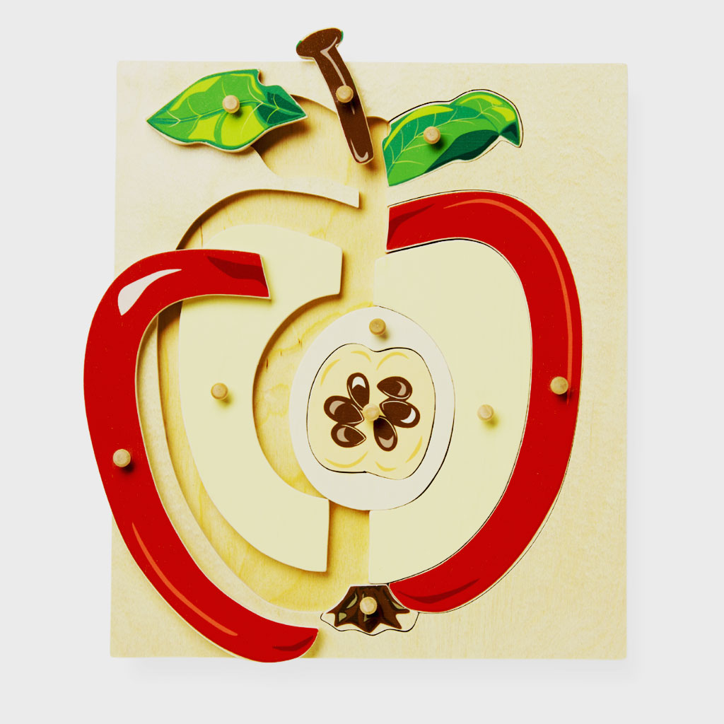 This unique Montessori Apple puzzle was created from original drawings and designs by Puzzle Heads Educational Products. This apple puzzle was created in response to requests from Montessori schools for a fall and harvest themed puzzle. Although this puzzle was designed with Montessori principles in mind, the learning features incorporated are equally valuable in any educational environment from preschools to homeschools and everything in between.